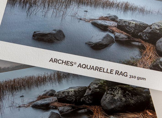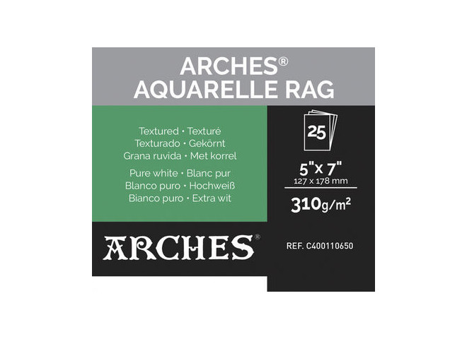 Canson Infinity Arches Aquarelle es un papel fine art en rollo de 43,2x1524cm y 310g/m² 100% algodón blanco natural con textura fina.