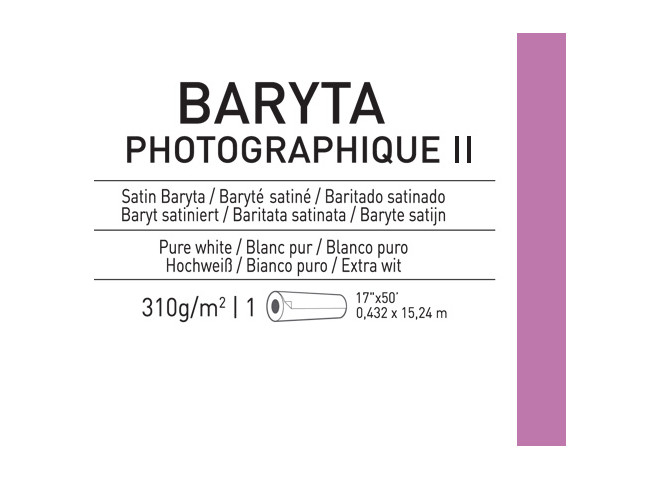 Canson Infinity Baryta Photo II es un papel fotográfico en rollo de 152,4x1200cm y 310g/m² con acabado baritado para impresión profesional.