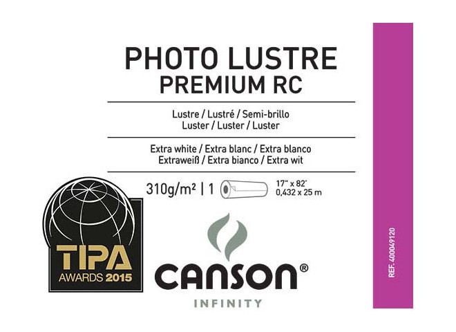 Canson Infinity PhotoLustre Premium RC es un papel fotográfico en rollo de 61x2500cm y 310g/m² con acabado lustre profesional.
